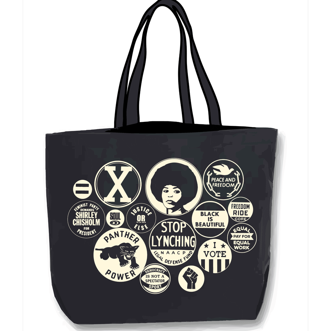 Tote bag inspired by campaign and activist buttons in the archives of the National Museum...